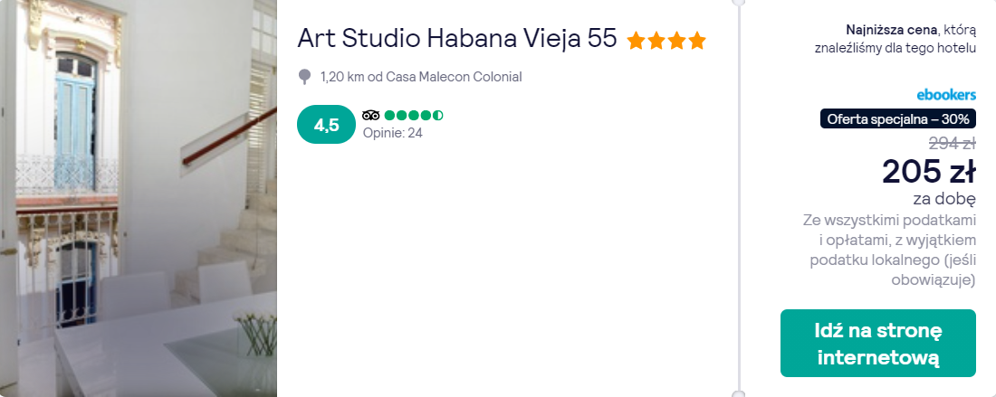 W Hawanie zatrzymajcie się w apartamencie Art Studio Habana Vieja 55. Pobyt w tym miejscu to gwarancja świetnej lokalizacji w samym sercu miasta. Goście cenią sobie wyjątkowo miłych właścicieli obiektu, którzy chętnie służą pomocą w każdej sprawie. Zabytkowe centrum miasta znajduje się zaledwie kilka kroków od apartamentu.