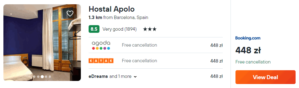 W Barcelonie proponuję ci zakwaterowanie w obiekcie Apolo, który znajduje się nieopodal stacji metra Paral·lel. W każdym pokoju jest łazienka z prysznicem.