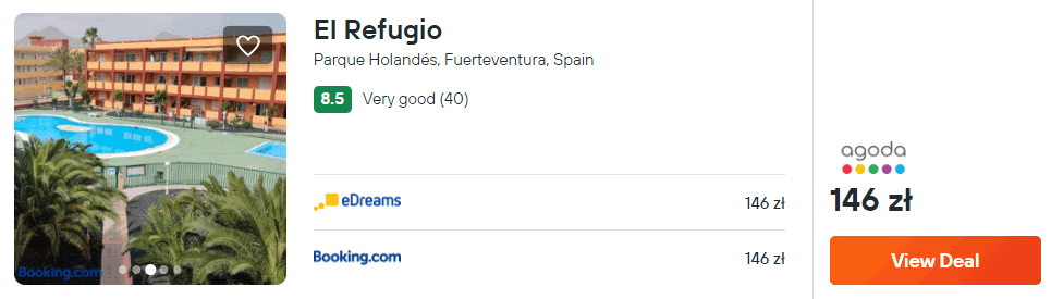 Natomiast na Fuerteventurze rekomenduję zakwaterowanie w kompleksie apartamentów El Refugio. Na miejscu zapewniony będziesz miał dostęp do odkrytego basenu, bezpłatnego parkingu oraz sieci WiFi.