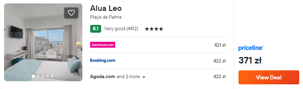 Na Majorce proponuję ci noclegi w 4* hotelu Alua Leo, który znajduje się w miejscowości Can Pastilla. Do najbliższej plaży dotrzesz w 5 minut spaceru. Na terenie całego obiektu będziesz miał zapewniony dostęp do sieci WiFi.