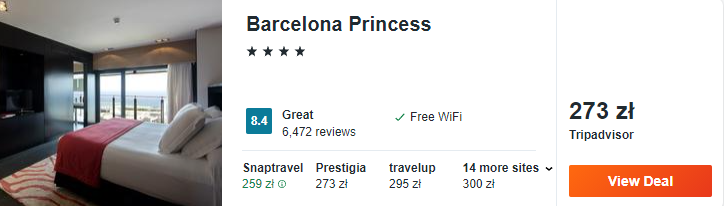 W Barcelonie zatrzymajcie się w 4* hotelu Princess. Dotychczasowi goście świetnie oceniają ten obiekt. Ponadto będziecie mogli skorzystać z basenu i bezpłatnego parkingu.