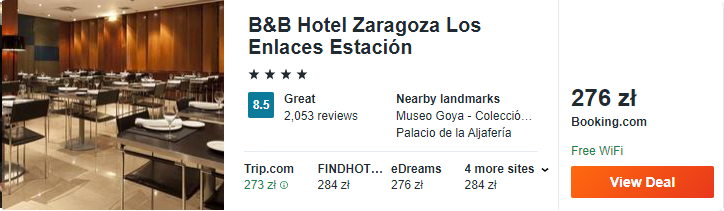 W Saragossie rekomenduję wam noclegi w 4* hotelu Los Enlaces Estacion. To obiekt położony w pobliżu centrum miasta. Do tego zostanie wam udostępnione darmowe miejsce parkingowe.