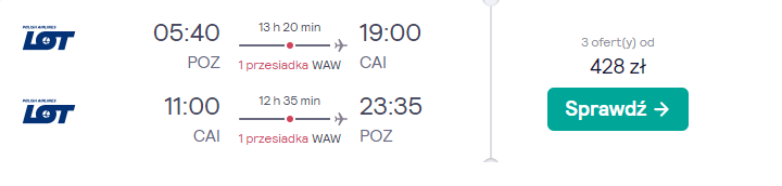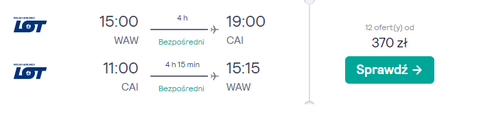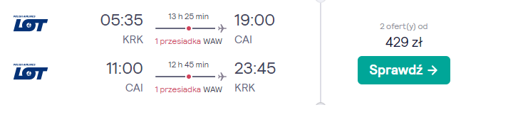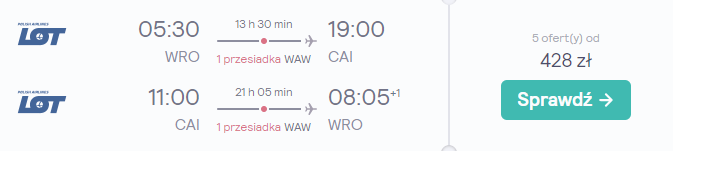 Niedawno informowaliśmy was o otworzeniu przez PLL LOT nowej trasy do Egiptu, dziś mamy dla was bilety w superniskich cenach! Do Kairu polecicie bezpośrednio z Warszawy lub z przesiadkami w stolicy w przypadku wylotów z portów regionalnych. W najniższej cenie będziecie podróżowali z bagażem podręcznym. Tym razem do wyboru macie aż 9 miast wylotów – najtańsze bilety zarezerwujecie już za 330 PLN.