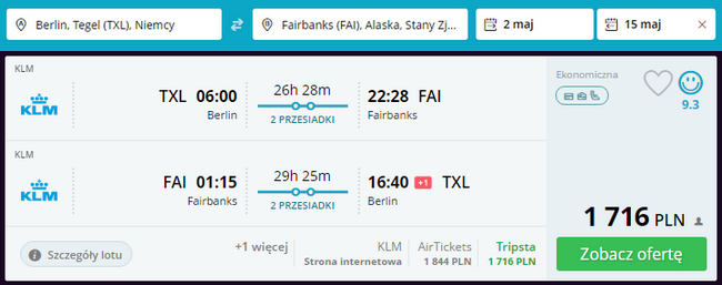 Berlin – Fairbanks – Berlin za 1716 PLN