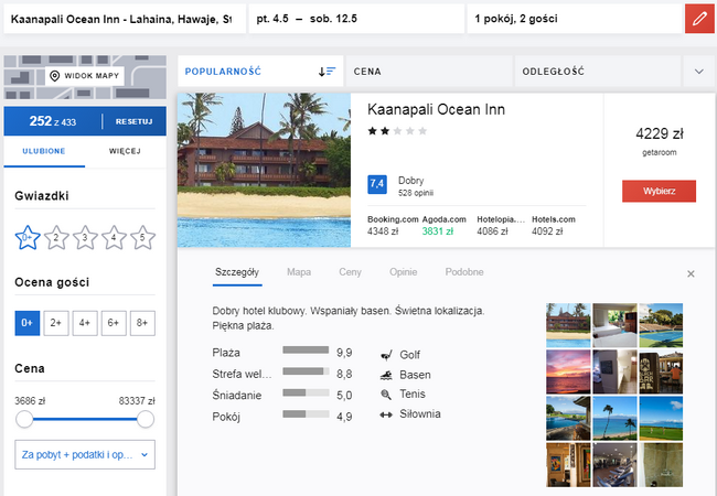 Przykładowa rezerwacja pobytu dwóch osób na Maui w terminie 4 – 12 maja: