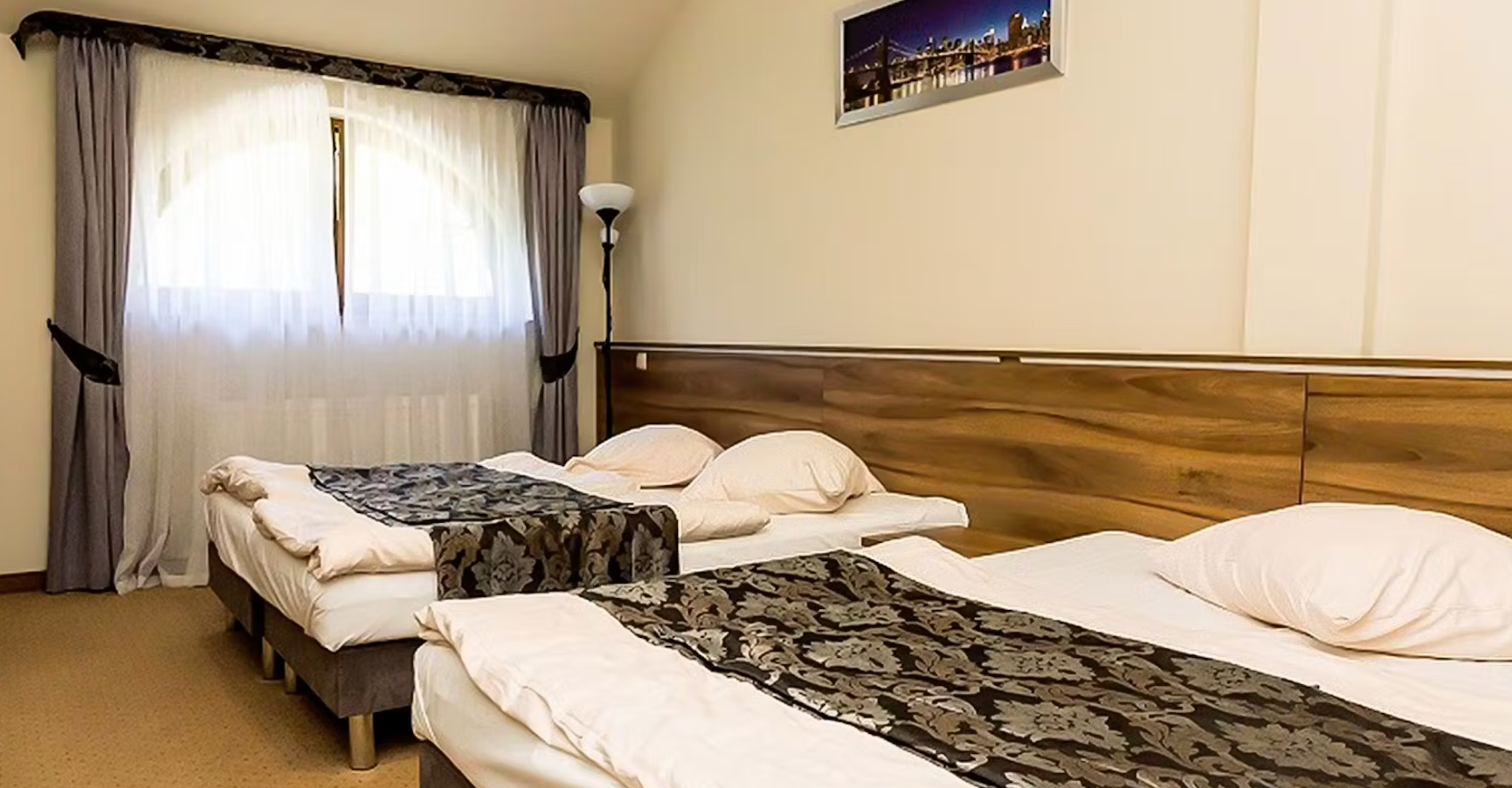 W cenie otrzymasz noclegi w komfortowo urządzonym pokoju oraz all inclusive: codzienne śniadania, obiady i kolacje oraz open bar (w godzinach13:00 – 20:00). W pakiecie dostaniesz również nielimitowany dostęp do basenu wewnętrznego, jacuzzi, brodzika dla dzieci, sauny suchej i łaźni parowej, godzinę gry w kręgle, przejazd kolejką turystyczną, bezpłatny parking oraz Internet WiFi.