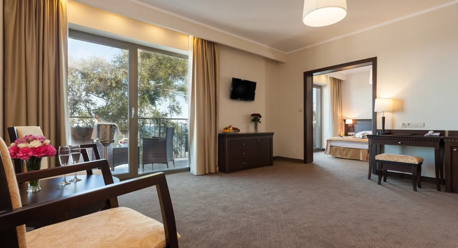 W cenie pobytu otrzymasz zakwaterowanie w komfortowo wyposażonym pokoju oraz codziennie śniadania w formie bufetu. W pakiecie z Travelist.pl dostaniesz także możliwość nielimitowanego korzystania z kompleksu wodnego (basen z kaskadą wodną oraz z przeciwprądami, brodzikiem dla dzieci, jacuzzi, sauna sucha, antresolą z leżakami do wypoczynku).