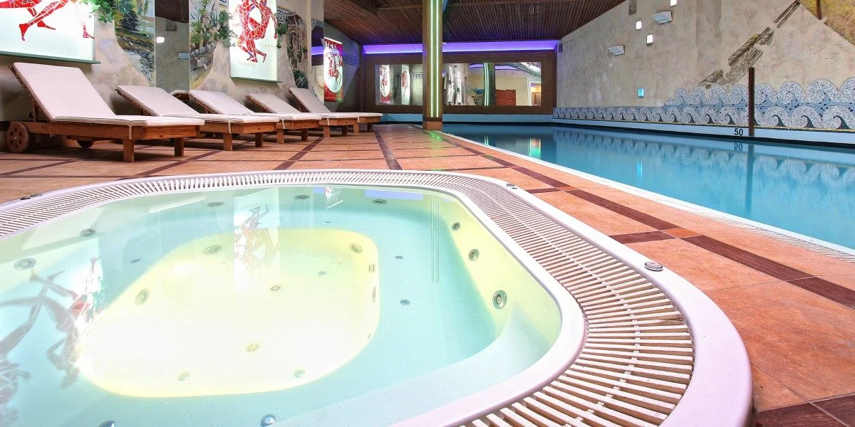 W cenie otrzymasz noclegi w komfortowo wyposażonym pokoju oraz śniadania i obiadokolacje. W pakiecie dostaniesz również nielimitowany wstęp do centrum termalnego z basenem, saunami, łaźniami, jacuzzi, grotą solną i czarą lodową.