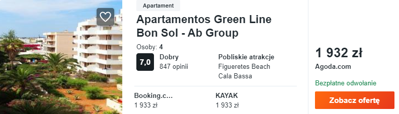 Za loty w dwie strony i noclegi w apartamencie zapłacicie 1014 PLN za osobę przy 2 podróżnych śpiących w jednym pokoju.