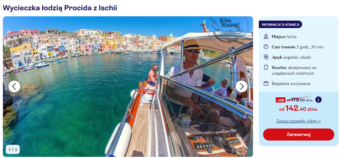 Będąc na miejscu, wybierz się również na pobliską Procidę. Wycieczkę łodzią możesz zarezerwować z wyprzedzeniem klikając tutaj.