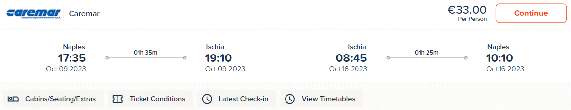 W Neapolu skorzystaj z usług armatora Caremar, którego prom zabierze cię na Ischię. Za podróż dla 2 osób w obie strony zapłacisz 66 EUR (ok. 293 PLN).