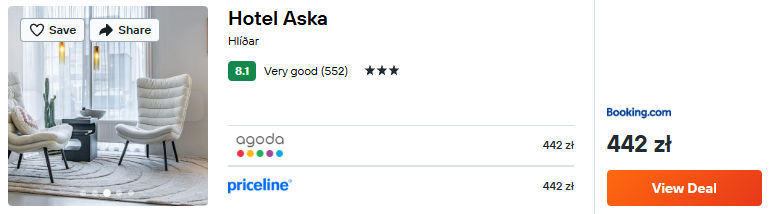 Jeżeli wolisz nocować w stolicy Islandii, postaw na 3* hotel Aska. Lokalizacja w Reykjaviku pozwoli na łatwy dojazd we wszystkie najważniejsze miejsca na wyspie. Dodatkowym atutem jest darmowy parking przy obiekcie.