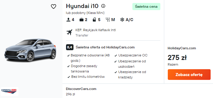 Wypożyczony samochód to absolutna konieczność na Islandii. Wynajmij go od razu po wylądowaniu na wyspie, by sprawnie dotrzeć do miejsca zakwaterowania, a następnie swobodnie przemieszczać się po okolicy.