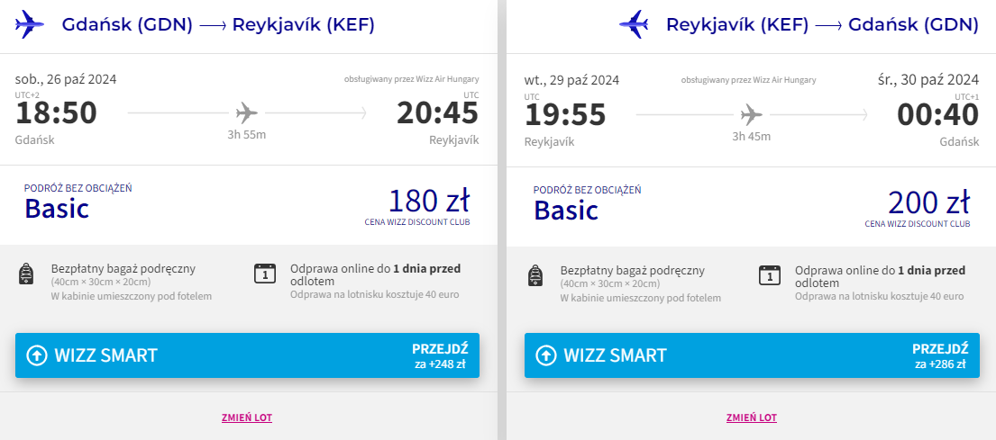 Na Islandię udasz się w dogodnym terminie obejmującym weekend (sobota – wtorek) 26 – 29 października. Do krainy ognia i lodu polecisz z Gdańska linią Wizz Air. Bilety w najniższej cenie dostępne są dla członków Wizz Discout Club, pozostałe osoby zapłacą nieco więcej.