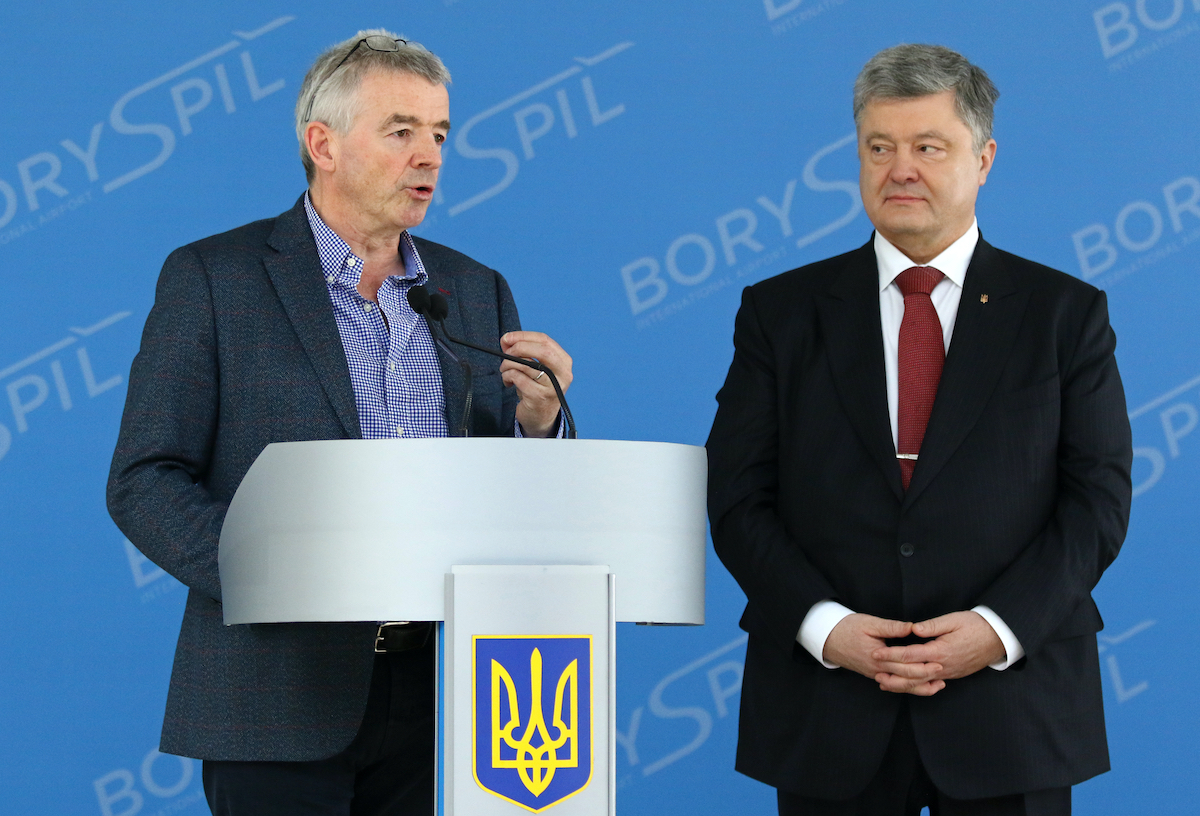 Powyższe zdjęcie pochodzi z konferencji prasowej, która odbyła się 23 marca 2018 roku na kijowskim lotniskom Boryspol. Widzimy na nim szefa Ryanaira Michaela O’Leary’ego, który w towarzystwie byłego już prezydenta Ukrainy Petra Poroszenki, ogłasza uruchomienie przez irlandzką linię lotów z kraju naszego wschodniego sąsiada. Ostatecznie debiut Ryanaira nastąpił jesienią 2018 roku, choć jak przystało na irlandzką linię – start nowych połączeń poprzedziła awantura. Taka zupełnie w stylu Ryanaira, która skończyła się czasowym odwołaniem wszystkich zaplanowanych połączeń, wówczas tylko z Kijowa i Lwowa. Poszło jak zwykle o pieniądze – Ryanair uroczyście ogłosił bowiem start połączeń z Ukrainy, podczas gdy nie dokończył jeszcze negocjacji z lotniskiem w Kijowie. Ukraiński port postanowił w pewnym momencie przejąć strategię negocjacyjną Ryanaira i ogłosił, że warunki proponowane przez Ryanaira (m.in. zwolnienie z wszelkich opłat i podatków lotniczych, a także procent z obrotów, które pasażerowie Ryanaira generują w lotniskowych sklepach bezcłowych!) są niezgodne z ukraińskim prawem. Spór ten opóźnił debiut Ryanaira na ukraińskim rynku o kilka miesięcy, ale nie ulega wątpliwości, że to właśnie irlandzka linia najmocniej przyczyniła się do rozwoju ukraińskiego rynku lotniczego w ostatnich latach.