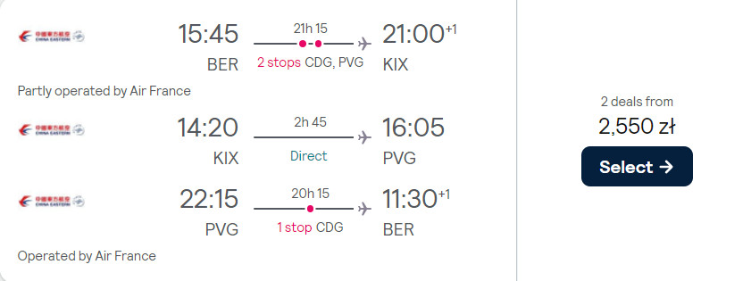 Do Japonii (Nagoja, Osaka) udasz się z berlińskiego portu lotniczego im. Willy’ego Brandta na przełomie lutego i marca. W obie strony polecisz na pokładach samolotów linii Air France, China Eastern Airlines i KLM.