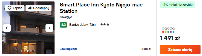Natomiast w Kioto postaw na położony w centrum 3* hotel Smart Place Inn. Obiekt będzie doskonałą bazą wypadową do zwiedzania miasta.
