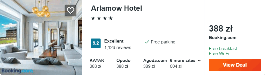 W przygotowanym przeze mnie zestawieniu natraficie na takie perełki, jak słynny 4* hotel Arłamów czy fantastyczny hotel – Norweska Dolina Luxury Resort. Za pobyt – od góry po Mazury i kończąc nad polskim wybrzeżem Morza Bałtyckiego – dla dwóch osób zapłacicie już od 242 PLN za noc.