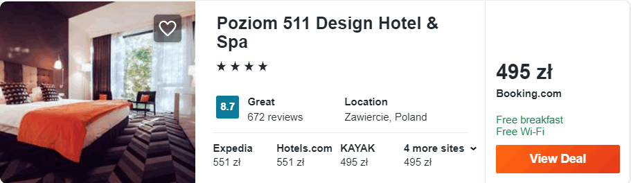 Na sam koniec mam dla was propozycję pobytu na Jurze Krakowsko-Częstochowskiej. Niepowtarzalny 4* hotel Poziom 511 Design Hotel & Spa znajduje się w spokojnej części Ogrodzieńca. W cenę zakwaterowania wliczono codzienne śniadania oraz wstęp do centrum odnowy biologicznej, w której jest: basen z wodą źródlaną, sauna, łaźnia parowa oraz wanna z hydromasażem.