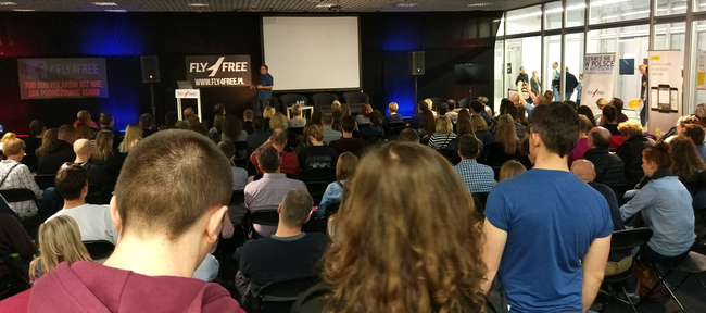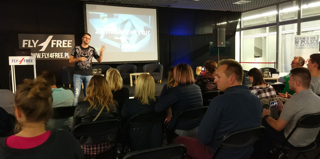 Sala zapełniona? Trudno się dziwić. Przykłady biletów lotniczych, które bywają tańsze od pizzy, rozpalają wyobraźnię. W życiu przecież jest ważne, aby sobie czasami polatać, prawda?