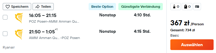 Na wycieczkę udasz się w terminie 25 maja – 1 czerwca. Do Ammanu polecisz bezpośrednio z Poznania z Ryanair. W cenie możesz zabrać bagaż podręczny.