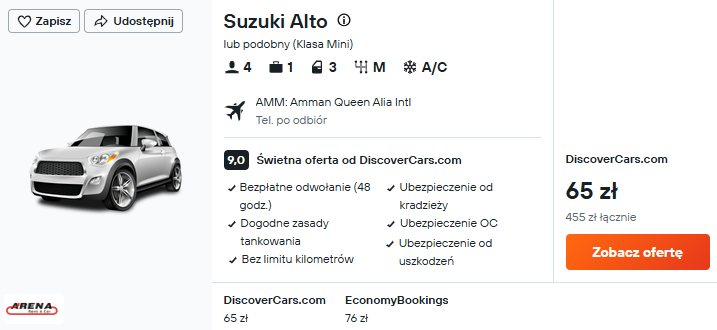 Wypożyczony samochód przyda się, by sprawnie przemieszczać się po Jordanii i dotrzeć do wszystkich wspomnianych w tekście miejsc. Wynajmij go tuż po wylądowaniu w Ammanie.