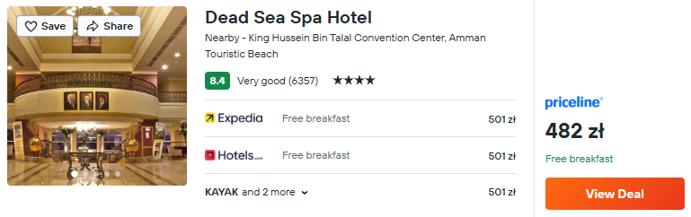 Nad Morzem Martwym zatrzymaj się w komfortowym 4* hotelu Dead Sea Spa. Będzie on doskonałym miejscem na relaks. Na dobry początek dnia otrzymasz tam pyszne śniadanie wliczone w cenę pobytu.