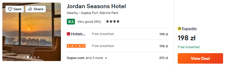 W Akabie wybierz 4* hotel Jordan Seasons. Obiekt oferuje świetną lokalizację i doskonałe widoki na pobliską zatokę.