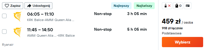 Wycieczkę zaplanowałem w terminie 30 listopada – 7 grudnia. Do Ammanu polecisz bezpośrednio z Krakowa z Ryanair. W cenie możesz zabrać bagaż podręczny.