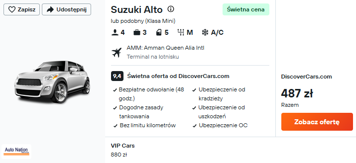 🚗 Tygodniowy wynajem auta: 487 PLN