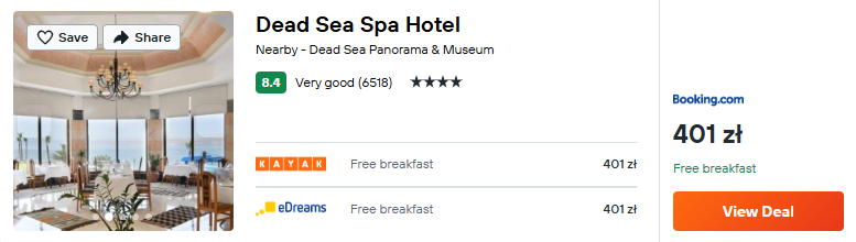 Nad Morzem Martwym postaw na komfort i wygodę. Zatrzymaj się w 4* hotelu Dead Sea Spa ze śniadaniami wliczonymi w cenę pobytu.