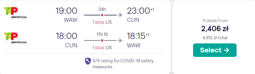 Do Meksyku wybierzecie się w terminie: 16(17) – 30 marca. Wasza podróż rozpocznie się i zakończy na lotnisku im. Fryderyka Chopina w Warszawie, a loty realizowane będą na pokładach samolotów linii lotniczych TAP Air Portugal. Po drodze czekają na was przesiadki w Lizbonie – w drodze na Półwysep Jukatan czeka was jednodniowy bonus w postaci zwiedzania stolicy Portugalii. W cenie biletu zabrać ze sobą będziecie mogli bagaż podręczny oraz jeden przedmiot osobisty (mały plecak lub damską torebkę).