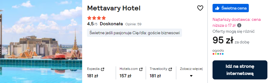 Aklimatyzację w Azji rozpocznij od pobytu w Phnom Penh. Zarezerwuj tam noclegi w świetnym 4* hotelu Mettavary. Obiekt oferuje doskonalą lokalizację oraz basen na dachu ze wspaniałą panoramą miasta.