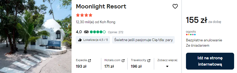 Na mniejszej z wysp (Sanloem) rekomenduję zatrzymać się we wspaniałym 4* Moonlight Resort. Obiekt oferuje zakwaterowanie w domkach z transparentnym dachem, przez który w nocy wpada światło księżyca!