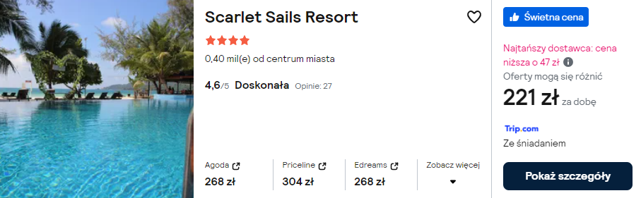 Na Koh Rong wybierz położony tuż przy plaży 4* Scarlet Sails Resort. Na gości czekają klimatyzowane pokoje, odkryty basen oraz serwis plażowy.