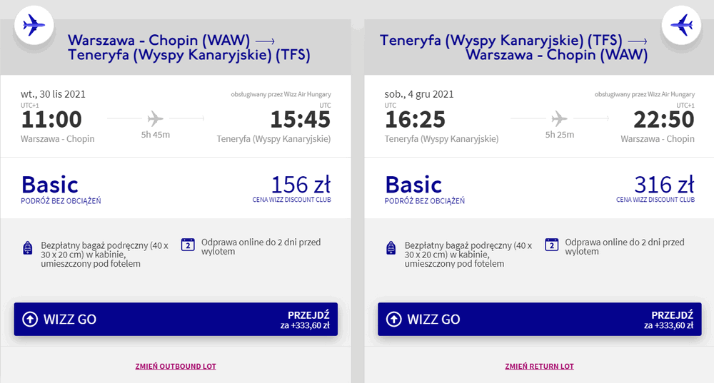 Warszawa – Teneryfa Południowa – Warszawa »