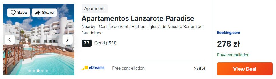 Tyle samo kosztować cię będzie pobyt w kompleksie Apartamentos Tabaiba, który od plaży w miejscowości Costa Teguise jest oddalony o 10 minut spokojnego spaceru.