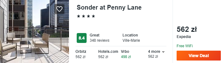 Natomiast w Montrealu proponuję wam noclegi w 4* hotelu Sonder at Penny Lane. Na miejscu będziecie mogli skorzystać z komfortowego pokoju z balkonem i prywatną łazienką. Skorzystacie też z darmowego Wi-Fi.