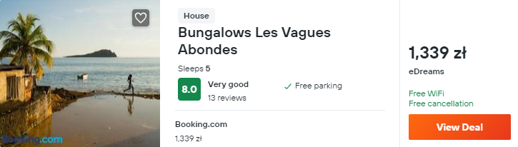 Wybrałem dla was zakwaterowanie w bardzo dobrze ocenianym obiekcie Bungalows Les Vagues Abondes. Do waszej dyspozycji będzie tam wakacyjny domek zlokalizowany tuż przy plaży.