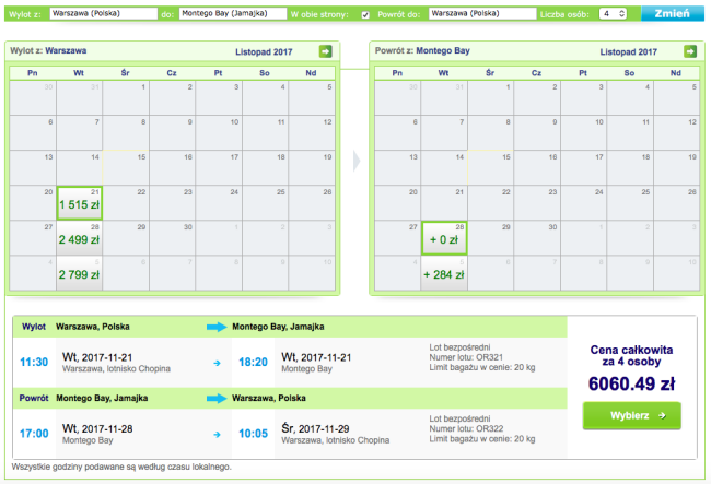Przykładowa rezerwacja dla 4 osób: