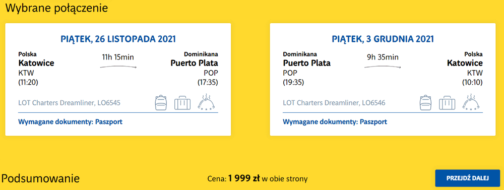 Katowice – Puerto Plata – Katowice »