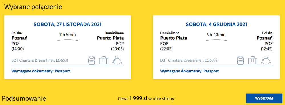Poznań – Puerto Plata – Poznań »