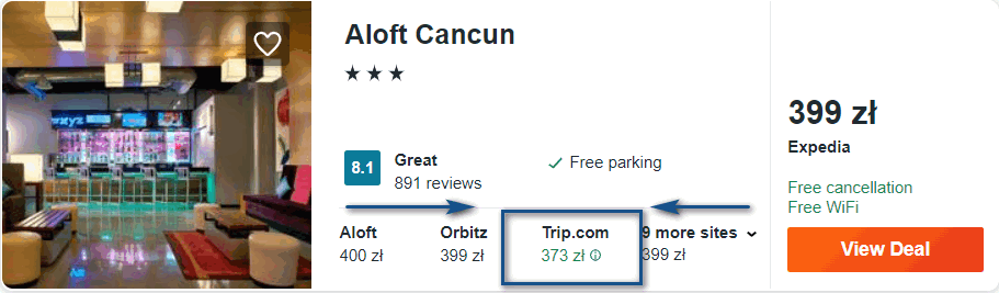 Natomiast w Cancun rekomenduję wam noclegi w 3* hotelu Aloft, który znajduje się w wypoczynkowej części miasta – Zona Hotelara. Najbliższa plaża od obiektu oddalona jest o 200 metrów! Wszystkie hotelowe pokoje są wyposażone w klimatyzację, telewizor LCD oraz czajnik elektryczny. W każdym jest także łazienka z prysznicem i suszarką do włosów.