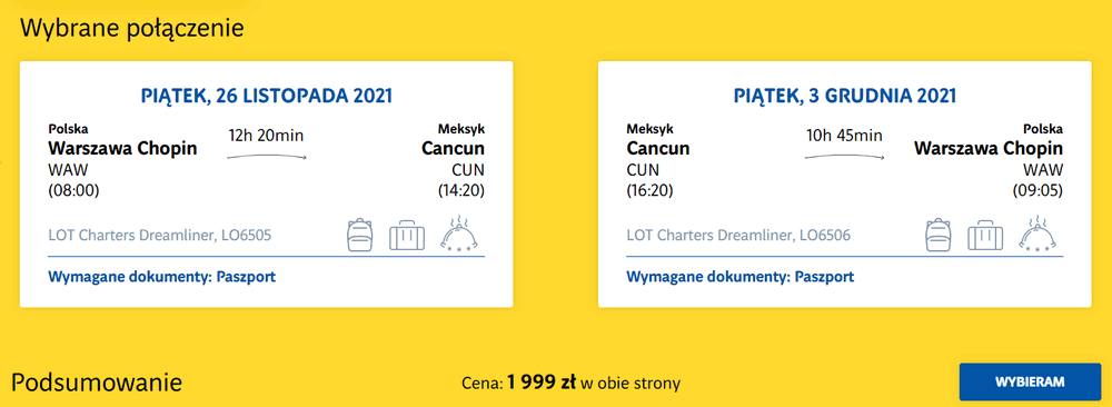 Warszawa – Cancun – Warszawa »