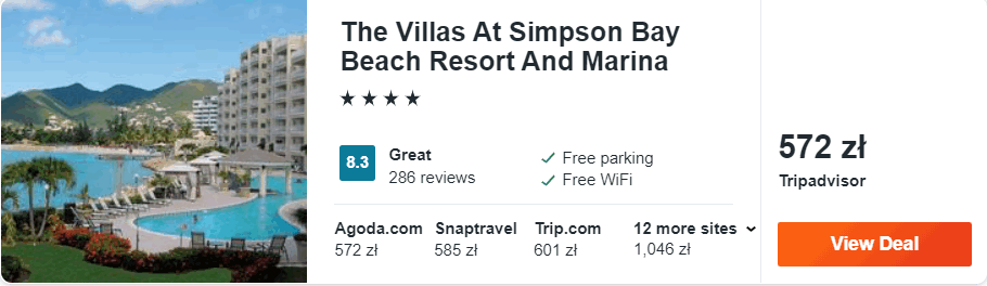 Dowiedzcie się więcej o tym hoteluNa Sint Maarten zatrzymajcie się w 4* ośrodku The Villas At Simpson Bay Beach Resort And Marina. Jest on położony nad brzegiem zatoki Simpson, nieopodal plaży Kim Sha. Na miejscu czekają na was komfortowo urządzone studia, kasyno oraz aż 6 odkrytych basenów.