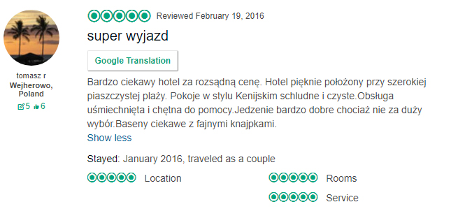 Jedna z opinii z serwisu Tripadvisor nt. hotelu: