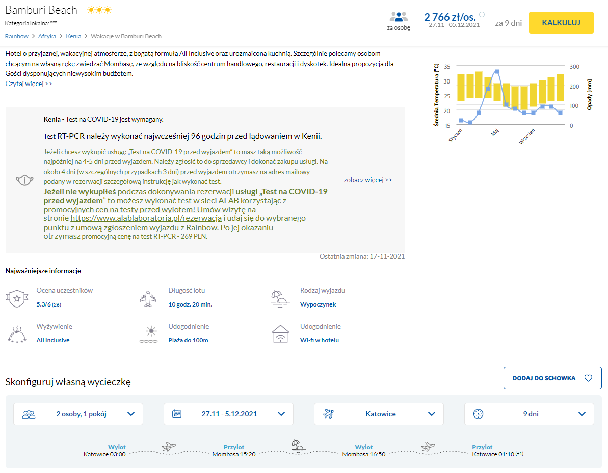 - Podróżując do Kenii musicie wypełnić formularz online oraz okazać negatywny wynik testu PCR wykonanego w ciągu 96 godzin przed podróżą.