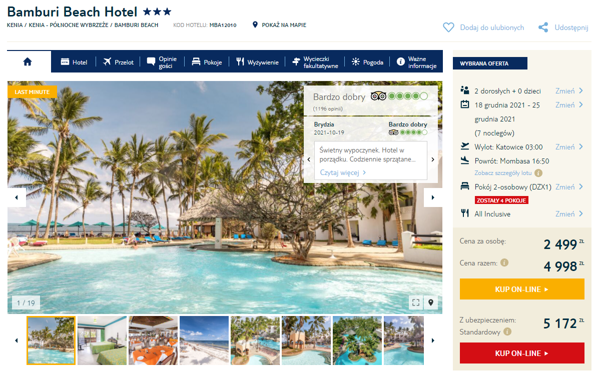 W Kenii będziecie zakwaterowani w 3* hotelu Bamburi Beach. Położony tuż przy piaszczystej plaży, z odkrytym basenem oraz bogatą ofertą all inclusive będzie doskonałym miejscem na beztroski wypoczynek!