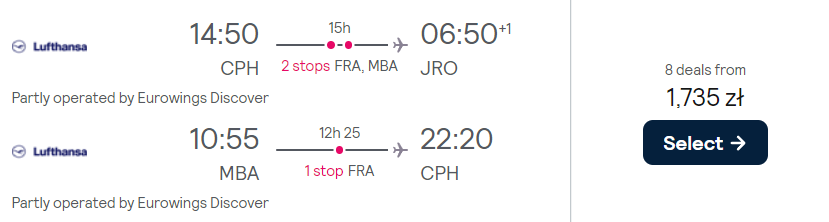 Możesz również połączyć trekking w Tanzanii z relaksem w Kenii. W tym celu zarezerwuj bilet na odcinkach Kopenhaga-Kilimandżaro i Mombasa-Kopenhaga. Następnie musisz zakupić lot na trasie Kilimandżaro-Mombasa.