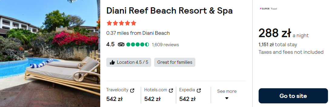 Wybrałeś opcję z wizytą w Kenii? W takim razie postaw na luksus i zatrzymaj się w 5* hotelu Diani Reef Beach Resort & Spa, który mieści się w pobliżu słynnej plaży.